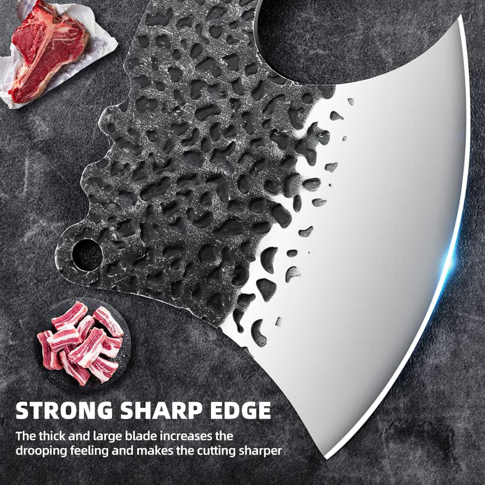 The KD Cleaver Forged Heavy Duty High Carbon Butcher Knife is expertly crafted with durable. top-quality materials. Its forged high carbon steel blade is razor-sharp and designed for hard and daily use. The ergonomic handle and balance provide superior control in the kitchen. Ideal for breaking down meat. chopping. and cutting. Perfect for BBQs and the professional chef.
